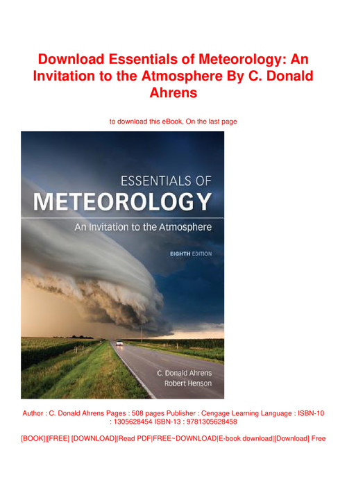 Essentials of meteorology pdf. In order to read online or download essentials of meteorology ebooks in pdf epub tuebl and mobi format you need to create a free account. Essentials of meteorology an invitation to the atmosphere download essentials of meteorology an invitation to the atmosphere or read online books in pdf epub tuebl and mobi format. View a comprehensive history of meteorology from the international commission on history of meteorology. Why pay over 219 for hardcopy when you can have the same ebook as pdf in your computer or smart phone cheapest price on the internet and you will get the ebook instantly in your email after checkout important before purchasing.